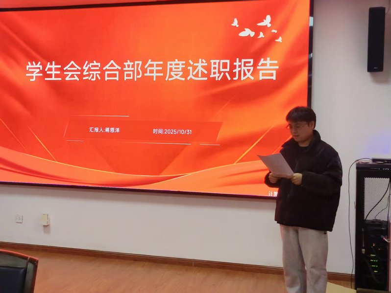会上,各部门负责人依次上台述职,围绕年度核心工作、特色活动开展、部门建设成效、工作中存在的问题及改进计划等方面进行详细汇报。汇报过程中,各负责人结合具体工作案例,条理清晰地展现了过去一年在学术服务、文体活动、志愿服务、权益保障、宣传联络等领域的工作成果,同时坦诚剖析了工作中的不足,并提出了针对性的优化思路,充分体现了学生干部的责任意识与务实作风。