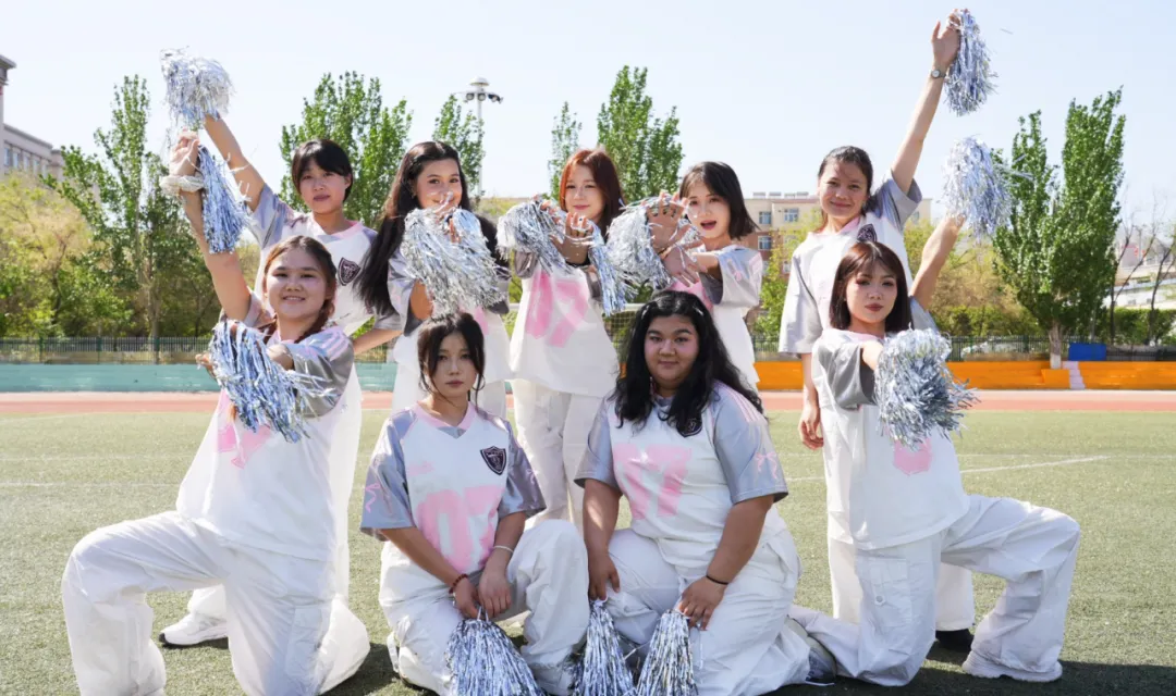 啦啦队员们用动感的舞步点燃全场,每一个跳跃都充满力量,每一个笑容都绽放光芒。她们用青春的活力诠释着对舞蹈的热爱,整齐划一的动作,活力四射的节奏,让人忍不住为她们疯狂打call!
