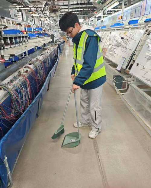 今年寒假,人智2401班的卢屹同学走进企业车间,参与实践工作。他身着反光背心,手持清洁工具,认真细致地清扫车间地面,维护生产环境的整洁有序。在专业的生产场景中,他以严谨的态度对待每一项任务,不仅体会到了一线工作的严谨与责任,也在实践中锤炼了自身的耐心与细致,为车间的高效运转贡献了自己的一份力量。