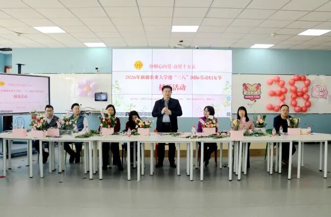 新疆农业大学党委书记谢树青,党委常委、纪委书记万净敏莅临现场,党办校办、校工会相关同志、承办单位全体班子成员与教职工及“三进两联一交友”学生代表们欢聚一堂,在花香雅韵中庆祝专属节日,共度美好时光。