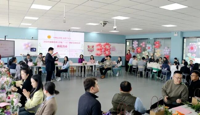 三月春风暖人心,巾帼芳华绽欢妍。在第116个“三八”国际劳动妇女节到来之际,3月4日下午,由中国教育工会新疆农业大学委员会主办,计算机与信息工程学院、公共管理学院(法学院)、网络与信息技术中心(数据中心)承办的“巾帼心向党,奋进十五五”插花活动在11号楼智慧教室温情启幕。